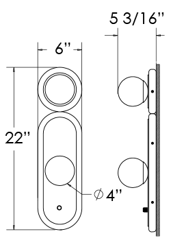 H= 22" W= 6" D= 5 3/16"